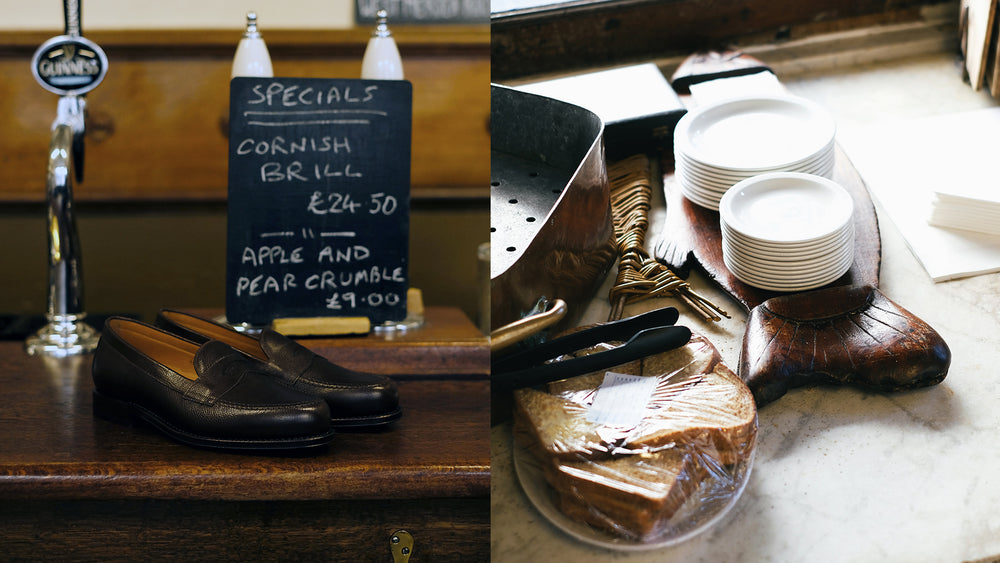 We nipped down to our favourite 200 year old 'city boy' haunt Sweetings for a tankard of the black stuff, a sticky toffee and a few pictures of the boys with our classics for our Autumn '25 campaign.